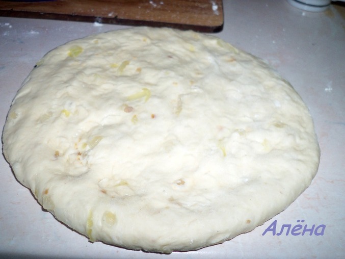 Тесто: любой кисломолочный продукт, у меня сыроватка- 1стак., сахар 1ч.л., соль 0,5ч.л., сода, 0,5ч.л.,, 1 обжаренная на раст. масле луковица, мука примерно 2,5стак.