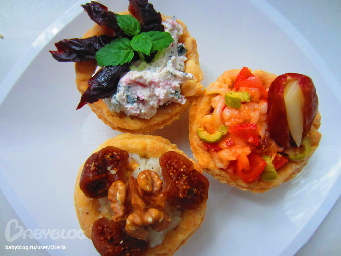 ЗакускиНеобычные тарталетки!!!Очень вкусная и изысканная закуска к вину.