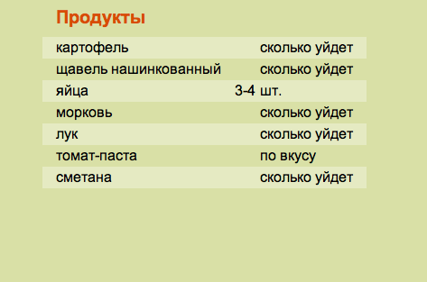 ну так вот - ищу рецепт щей щавелевых, вот что нашла: