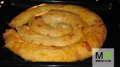 Замесить не слишком крутое тесто и дать ему отдохнуть 20 мин.Разделать его на небольшие шарики(80-100 г),накрыть полотенцем и оставить на 5-7 мин.Раскатать коржи толщиной 2 мм,затем на руках осторожно растянуть середину коржа,положить его на скатерть и вытянуть до прозрачности.Побрызгать или смазать растопленным сливочным маслом с маргарином,равномерно разложить творог с брынзой,перемешанные с сырыми яйцами.Так повторить три раза.Затем,приподнимая одну сторону скатерти,свернуть рулет и крутить его концы в разные стороны.Осторожно уложить вертуту в виде спирали на смазанную маслом или маргарином глубокую сковороду,смазать взбитым яйцом и выпекать на среднем огне 40 мин.Подается в горячем виде.Начинка для вертуты может быть самая разнообразная.