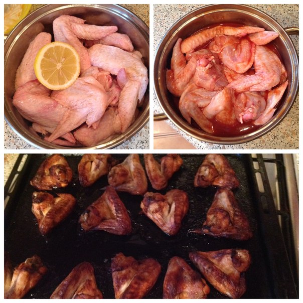 Крылья моем,маринуем. Лучше это сделать заранее, например за сутки, если времени нет и хочется есть, можно, чтобы крылышки куриные постояли минут 30.