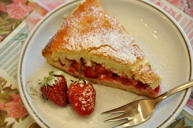 Пироги, пирожки, булочкиЯ уже писала о нашем любимом клубничном пироге http://www.babyblog.ru/community/post/cookingbook/1713712. Тогда я пробовала сделать его с киви, вместо клубники. А вот сейчас время делать его так, как надо, с ароматной клубничкой. Такая вкуснятина!!!
