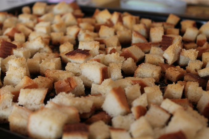 ХлебСкорее всего кто-то выкладывал уже рецепт их приготовления... Но после произошедших событий не могу не выложить - ведь это так быстро, удобно и вкусно! Недавно была в гостях. Хозяйка молодчина - готовит хорошо, но я была в шоке от её салата Цезаря.. Ну что за сухари?! А когла она сказала, что покупные - я в ужасе застыла... ЗАЧЕМ?! Это делается за 5-10 минут.. Зачем покупать эти невкусные сухарики и чтобы потом еще не дай Бог живот болел если можно сделать всё самой... А она оказывается просто не умеет сама. Я ей рассказала свой рецепт. Теперь решила поделится с Вами. Вдруг кому пригодится. Они хороши к любому салату, супу и вообще просто так вкусно можно похрустеть ;)))