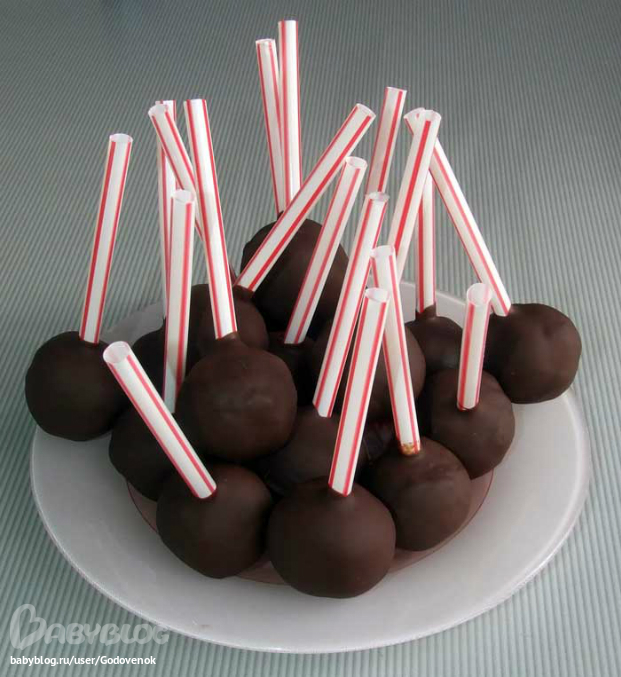 Небольшая часть бисквита у меня ушло на кейкпопсы (cakepops):