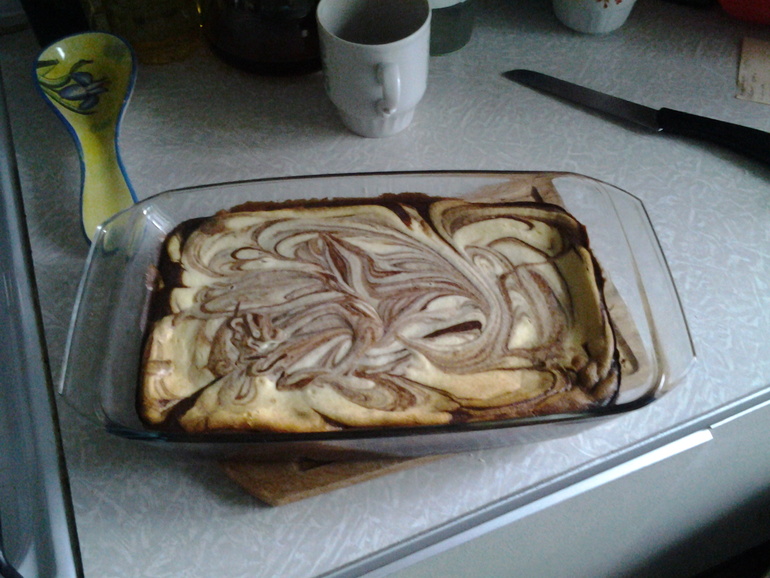 Чтобы слои были идеально ровными, наливайте аккуратно, причем по лопатке. Тогда будет идеальный рисунок.Ставим в разогретую до 180 градусов духовку на 40 минут (примерно).