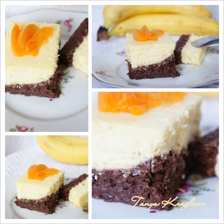 Сразу скажу, что сахара я положила меньше, чем указано в рецепте. Банан для меня и так слишком сладкий. Поэтому в банановый слой я положила 2 ст.ложки, а в творожный - 4. И манки я немного убавила - в творог 2 ложки, в банан - 2 ложки+1 ложку шоколадного пудинга (можно вместо пудинга положить крахмал), т.к. банановый слой получается слишком жидким.
