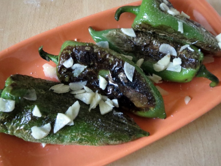 Блюда из овощейНаилюбимейший завтрак в это время года — поджареный целиком болгарский перчик с рубленым чесночком и простыми лепешками.
