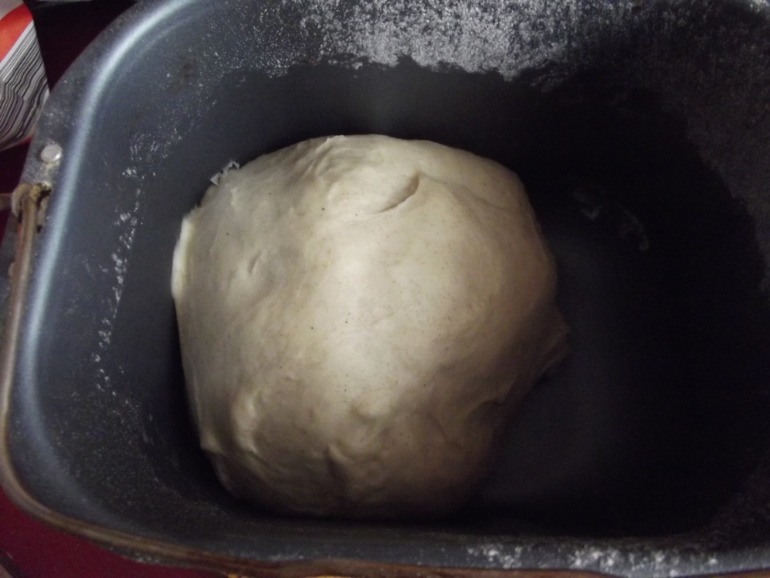 Замесить тесто, когда ХП полностью остановиться на успокаивание и подьём теста,( в моей мулечке это за 2 часа до полной готовности) убрать лопатку, достать колобок,