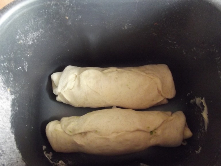 разделить его на 4-5 частей, раскатать их, посыпать сыром и чесноком,