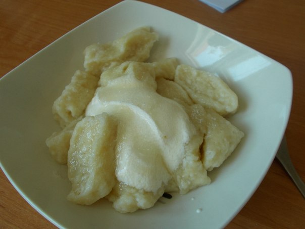 на глаз делала... Мама все пытается в меня кальций впихнуть в виде творога со сметаной, а я сопротивляюсь. То пирог приготовлю, то вот вареники ленивые. Я на глаз все делала. Творог, мука, яйцо+соль немножко. В кипящую воду и после всплытия пару минут. При подаче сметанка+сахар)