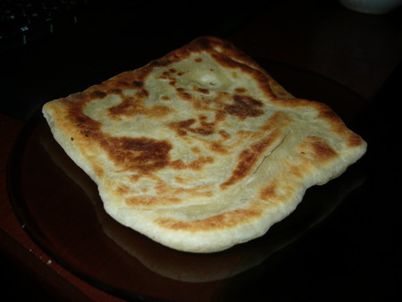 Тесто разделить на шарики. Раскатать в тонкие лепешки (как на пельмени или вареники). В середину положить сыр (количество определяла на глаз, но сыра должно быть много). Защепить в центре. Раскатать получившиеся пирожки опять в лепешку толщиной около 0,5 см.