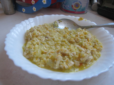 Сегодня утром во время ревизии холодильника обнаружены остатки пшеной каши, грудку запеченной в СВЧ печке ( http://www.babyblog.ru/com/cookingbook/cat/57), и снова захотелось кулеша.