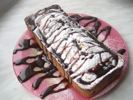 готовый кекс посыпать сахарной пудрой, я ещё полила шоколадным сиропом, ням:)