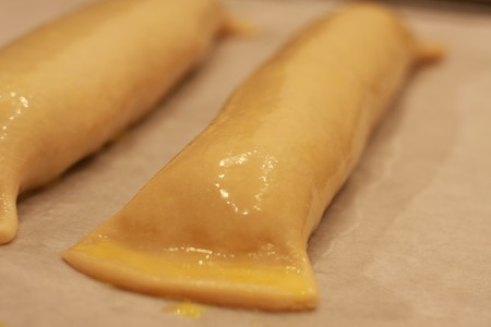 смазываем рулетики яйцом и даём еще "отдохнуть". я жду пока яйцо высохнет, приблизительно 30 мин.