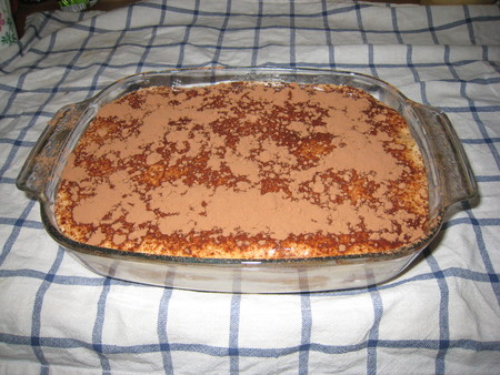 Перед самой подачей на стол посыпать тирамису тонким слоем какао-порошка, его можно смешать с небольшим количеством сахарной пудры. Перед нарезанием на порции каждый раз опускать нож в горячую воду.