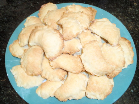 Края обязательно защипать хорошо,а то сахар вытечет и печенье подгорит.