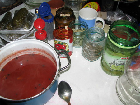 Опробовав на готовых огурцах, нынче если я сама солю огурцы, то рассол делаю из томатного сока (в идеале самостоятельно добытого из помидоров) вместо воды. Россол - квашенный томатный сок потом можно использовать для борща или щей, солянки в качестве красителя и закислителя. (Этот рассольчик тоже в пищу пойдет). Мне он уже нравится.