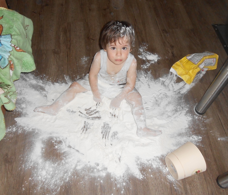 Ну дала поиграть минут 5, чёуж. Раз-два-три-четыре-пять, мы спокойно уберем, будет чисто все опять… ля-ля-ля…Старалась не раздражаться, когда Ленёк еще мешал и фотать, потому что мама гворила, что тесто всё чувствует. Я уж думала, все пропало, да и начинка неопробованная… Но нет, поднялся пирожок как редко когда, пах завлекательно и на вкус не разочаровал.