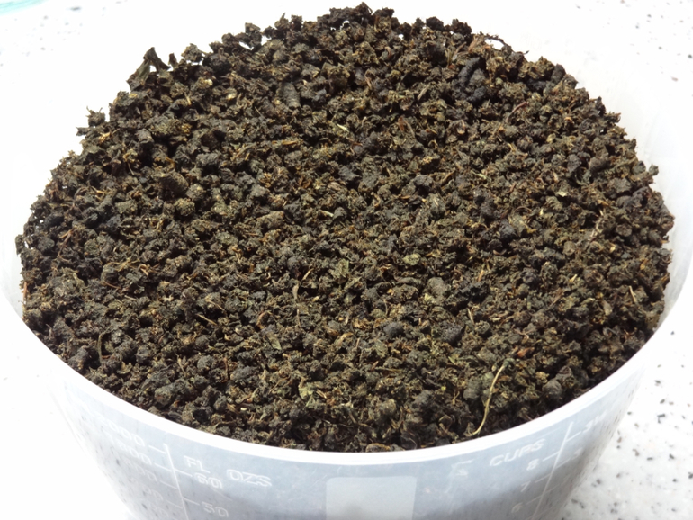 Из такого количества листьев и цветов (на фото еще зверобой сушится, он никак не относится к чаю).
