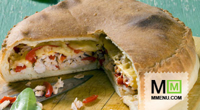 ПиццаЗакрытая пицца "кальцони" удобна тем, что ее можно завернуть ребенку с собой в школу. Предлагаем вариант с копченой курочкой.