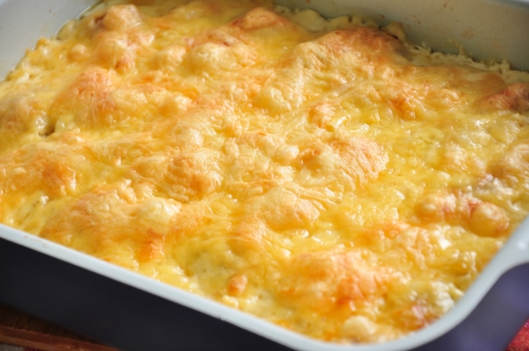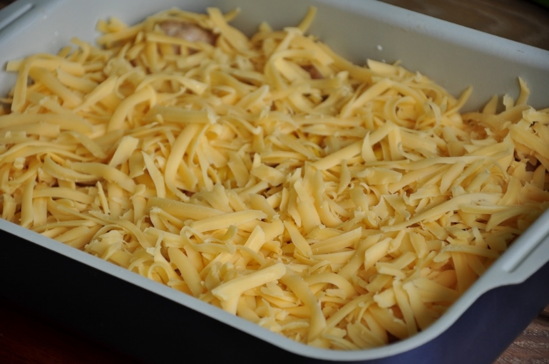Блюдо запекать при 200С около 40 минут, до появления румяного цвета сыра.