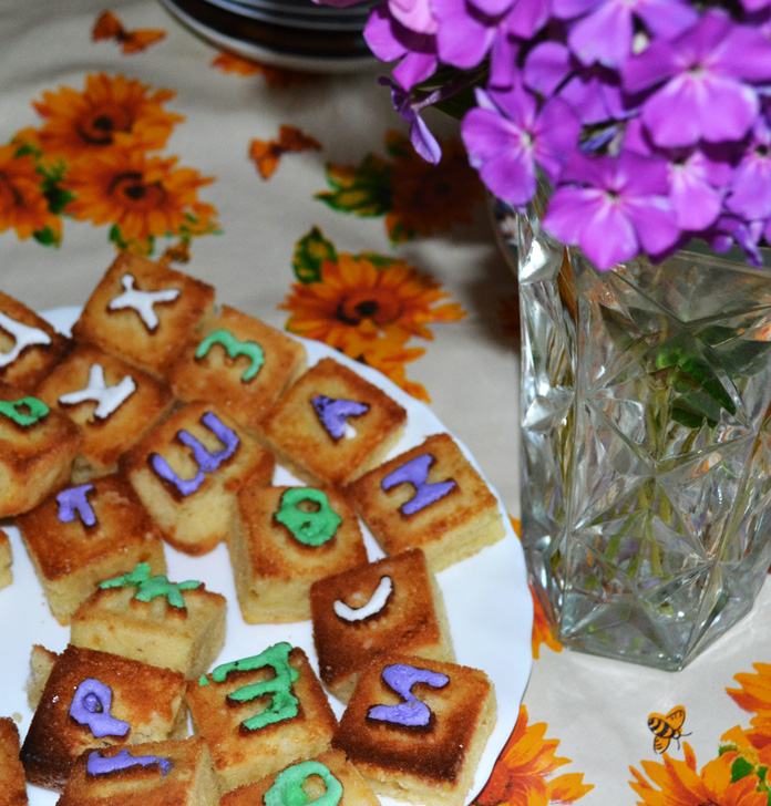 Кексы с буквами и пряники в виде карандашей. Пряничное тесто делала заранее,так как казульное тесто может долго в холодильнике хранится,почему то у меня часто пряники получаются не ровные,с "пузыриками",может вы посоветуете, как этого избежать.Я читала,что тесто должно быть очень тонко раскатано,поробовла,но что то все равно пузырится иногда,может еще какие- секреты есть?