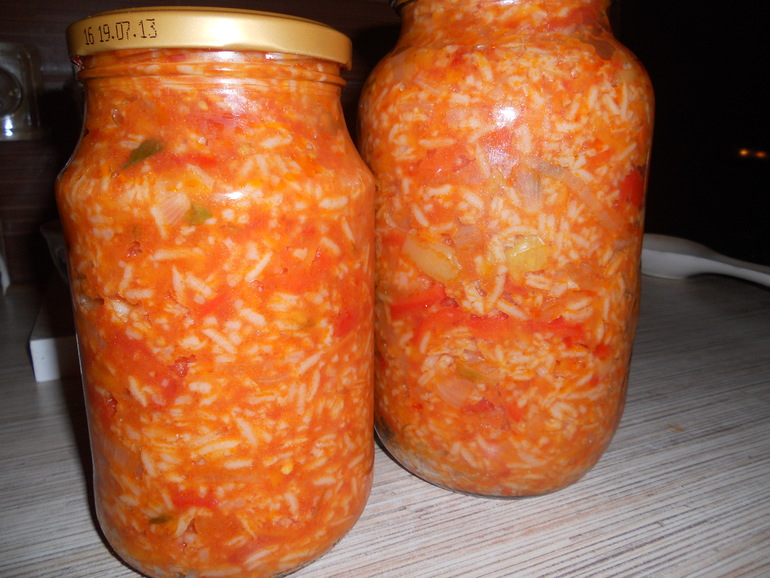 ДВ! ранее думала..с рисом?! наверное ерунда!Но девочки -это такая вкуснотища!!! итак рецепт: 3кг помидор, 500 гр.болгарского перца, 500 гр. лука,500 грамм моркови, 400 гр.растительного масла, 2 стакана риса,6ч .л.соли,6 ст.л.сахара,10 ч.л. уксуса 9%.