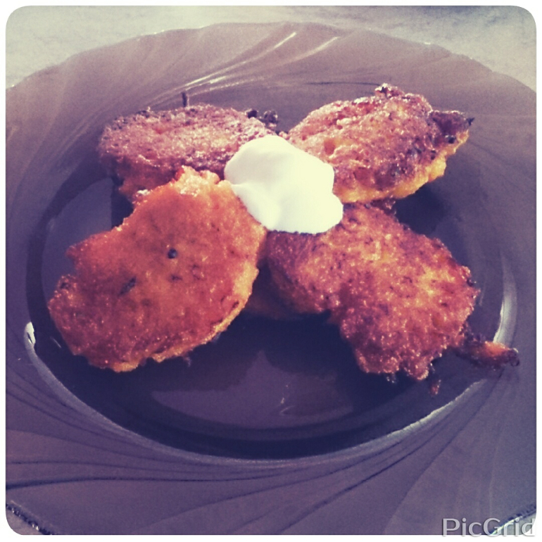400 г тыквы, 2-3 яйца, 2-3 ст. лож сахара, 3-4 ст. лож манки, 2-3 ст. лож муки, щепотка соли. Растительное масло для обжарки.