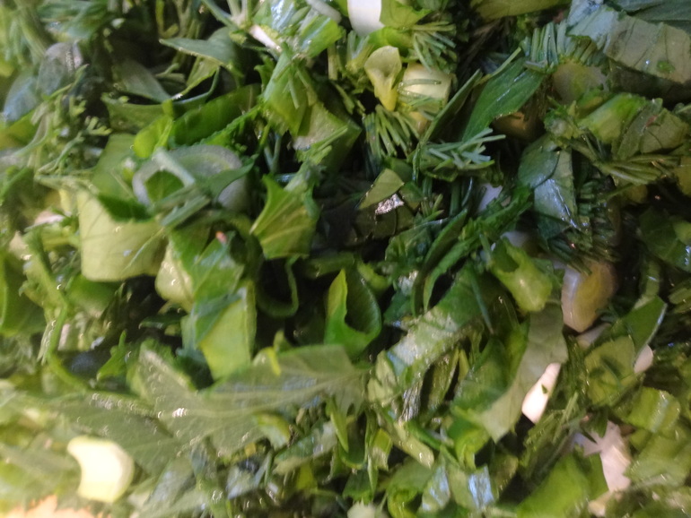 2. Зеленый лук, петрушку и укроп вымойте, стряхните воду, мелко нарубите.
