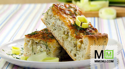 Пироги, пирожки, булочкиОткрытый пирог в лучших европейских традиция. Интересно, что в дрожжевое тесто добавляется зелень, а лук-порей делает мясную начинку нежнее и пышнее.