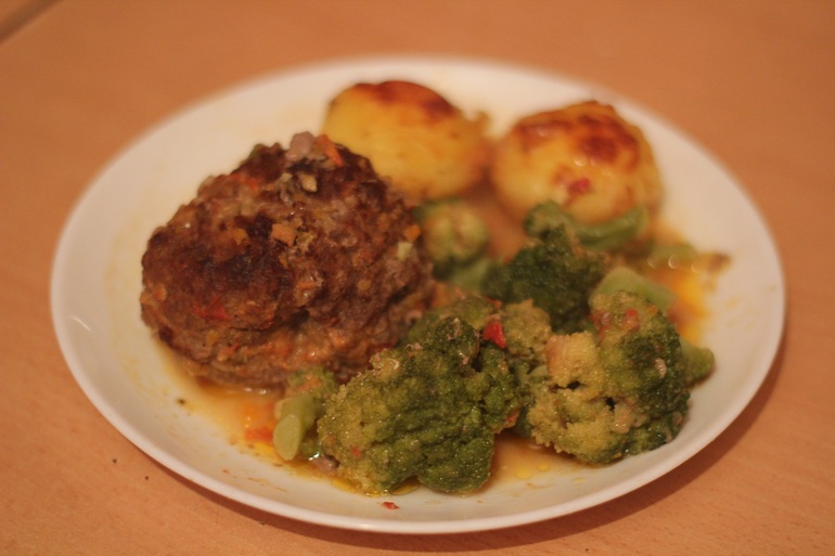 Котлетки запеченные с картошкой и брокколи