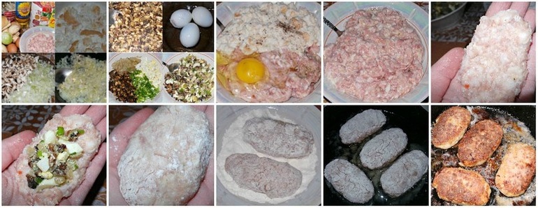 Начинка должна быть внутри котлеты и закрываться фаршем со всех сторон.Таким образом приготовить оставшиеся зразы.
