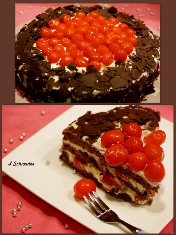 На первой фотографии в начале поста - у меня было всего 2 коржа и я использовала замороженную черешню