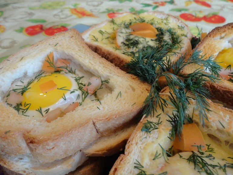 Горячие тосты с грибами и яйцом. Видеорецепт