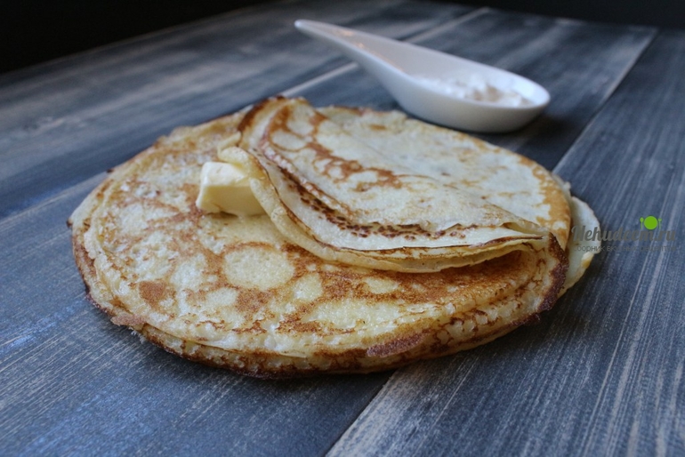 Блины, оладьи, лепёшкиНежнейшие, тонкие заварные сметанные блины. Тесто очень пластичное, именно с таким тестом очень удобно учиться подкидывать блины. Готовы?