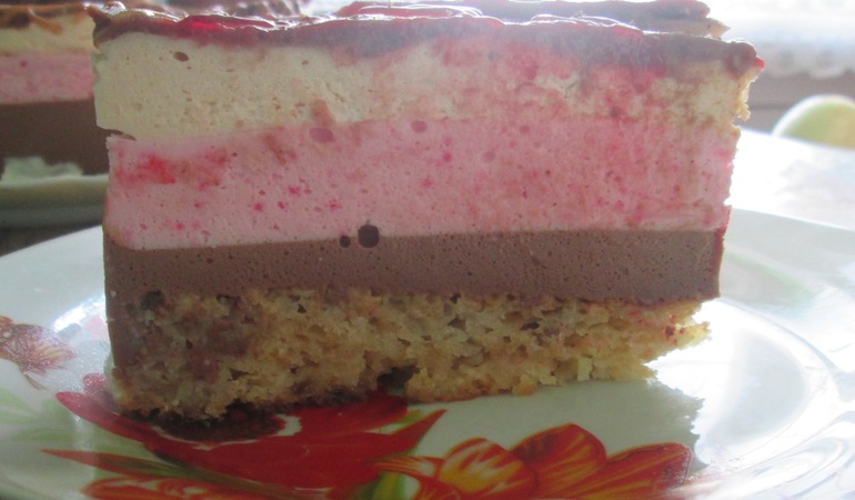 Но очень вкусно!!! Лучше, чем из магазина! Папка наш прям как ребёнок радовался)))За основу взят рецепт Три шоколада, идею которого увидела здесь на ББ (Женюш спасибо!!!!), только немного модернизировала приготовление муссов рецептом Птичье молоко, и бисквит пёкся по этому рецепту.