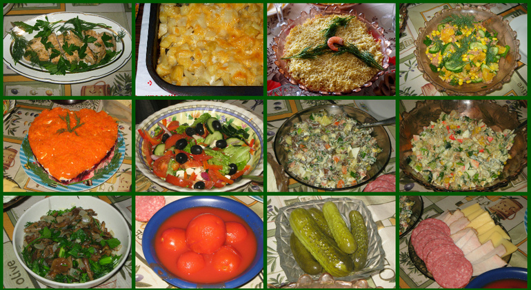 Не так уж много... За столом было 4 человека. Осталась половина салатов, разделили со свекровью пополам.