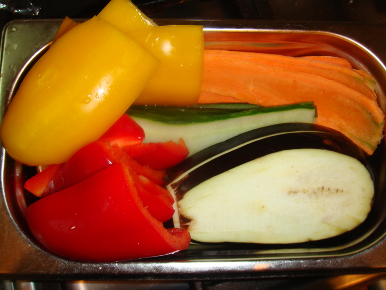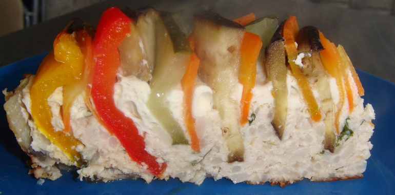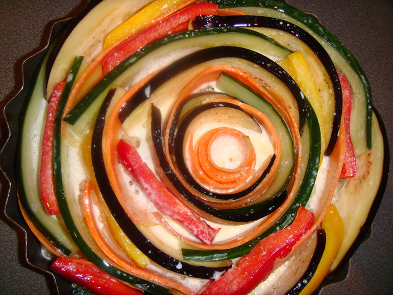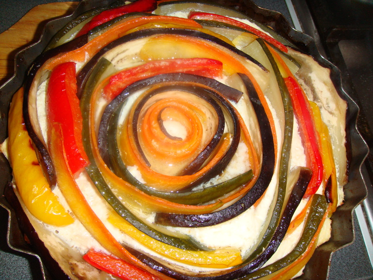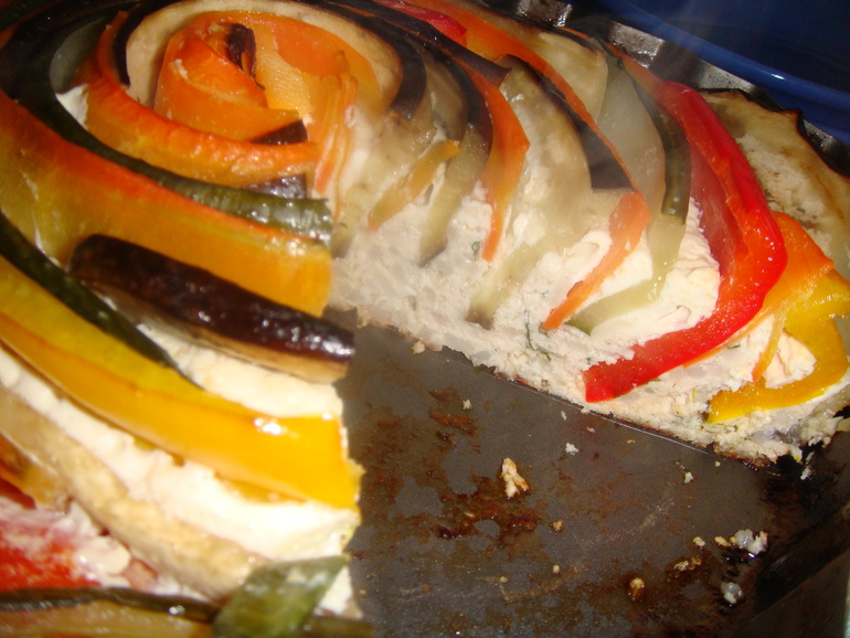 Но надо еще смазать овощи сверху оливковым маслом и поставить запекать в прогретую духовку на 35 минут. Первые 20 минут под фольгой. Получается вот такая красота: