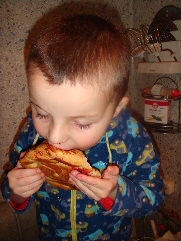 Вова ест плюшки как Кот Матроскин из Простоквашино: маслом (вареньем) на язык: