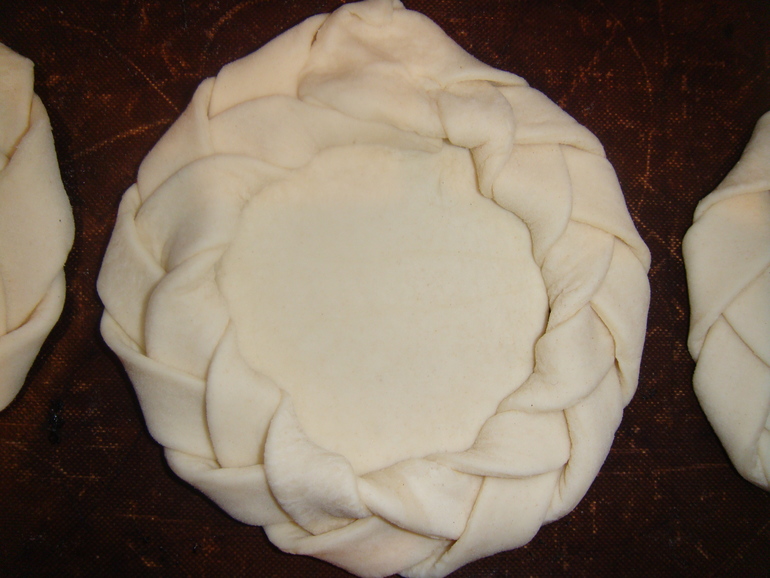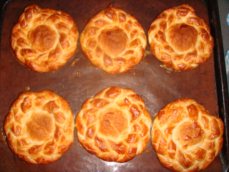 Смазать яйцом, испечь в максимально горячей духовке до золотистости: