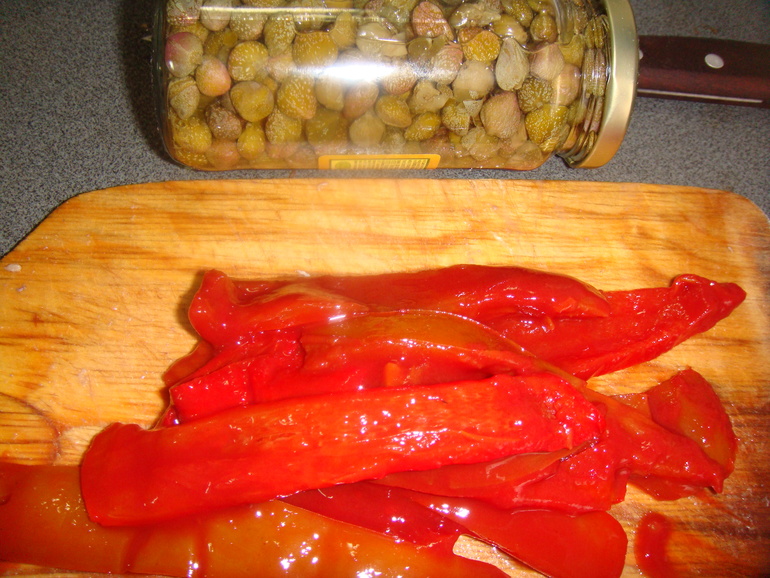 Нарезать перец из лечо, положить в суп вместе с каперсами: