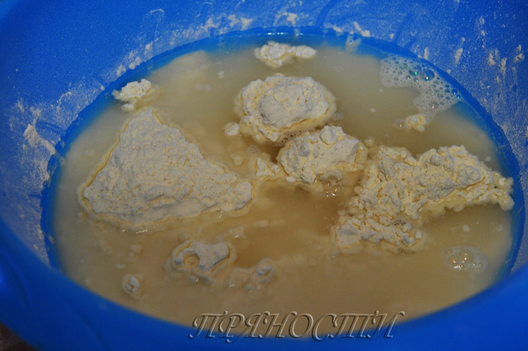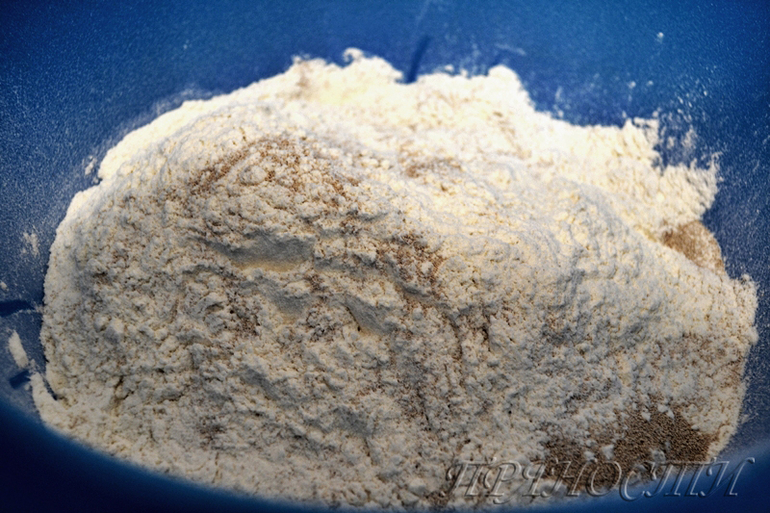 Если вы используете свежие дрожжи,то нужно смешать их с мукой и растереть до образования мелкой крошки,если же дрожжи сухие-то перемешайте их с мукой.