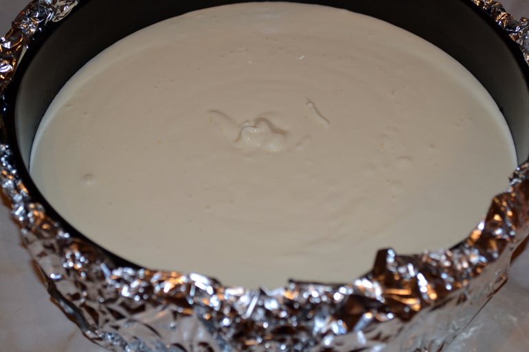 После выпечки оставить чизкейк в духовке остывать еще на час, дверцу не закрывайте плотно. Затем затягиваем верх формы пленкой и отправляем в холодильник на ночь