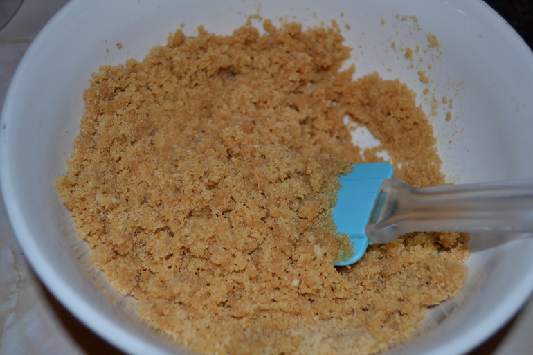 Измельчить печенье в мелкую крошку смешать с растопленным маслом