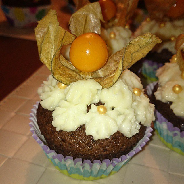 - Повторить с остальными кексами. Верх кексов также украсить кремом.