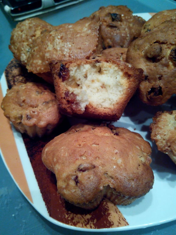 *замечания по процессу. Изюм по совету Чадеевой вымачиваю в чае с ароматным алкоголем. Сахара надо поменьше - грамм 100-120. Маленькие кексы на газу пеклись 50 мин.