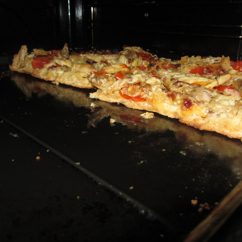 Пиццасегодня приготовила. очень вкусно и просто. И спасла курицу, которую я запекла в пакете и никто ее есть не стал