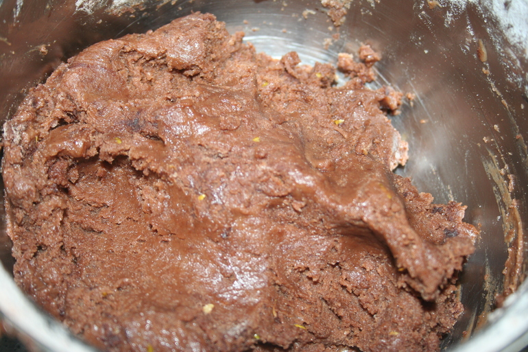Тесто готовим просто: смешиваем по порядку все продукты. Сначала масло с сахаром, затем добавляем к ним яйцо и молоко, дальше цедру и какао, а затем муку. На каждом этапе хорошенько размешиваем миксером, хотя после добавления муки я уже подключаю руки.