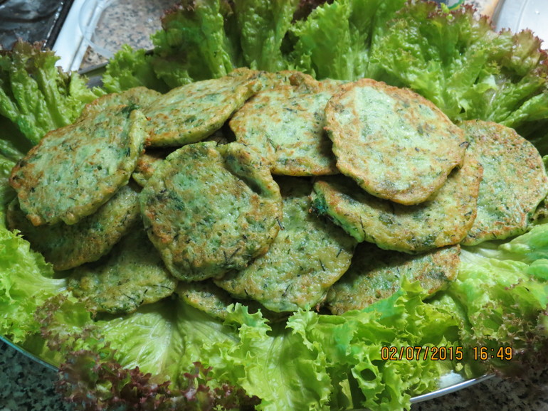 Блюда из овощейУ нас сегодня на ужин были оладьи, летние с зеленью и со сметанкой.