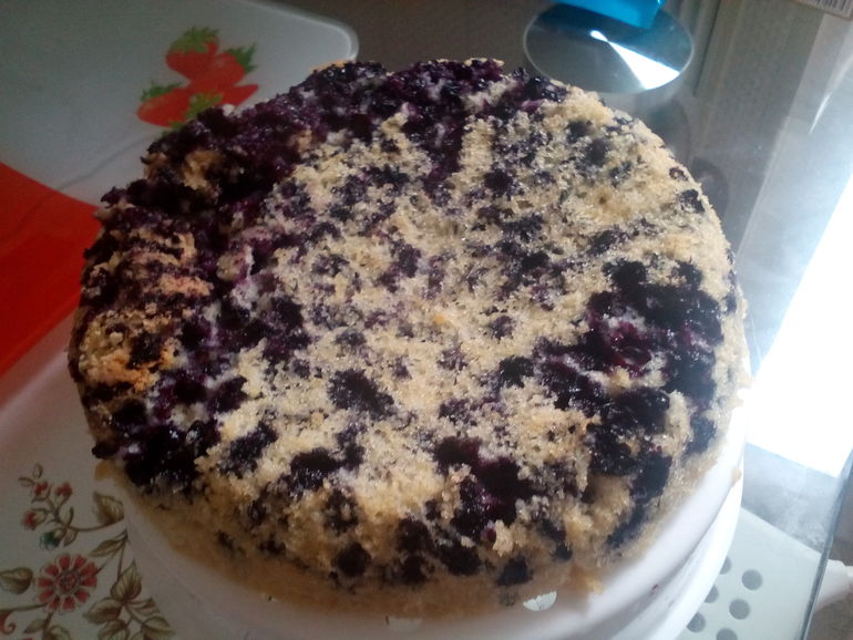 вкуснота:) Я тоже на прошлой неделе готовила шарлотку с черникой. Только сахара пожалела. С кислинкой получилось( Но съели всё